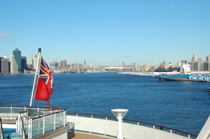Cunard made a statement with the meeting of the Three Queens in New York and a spectacular fire-work. I am sorry I do not have many great photos and it is my fault. I have for my Nikon single-lens reflex a new lens from 18-200 mm and I had planned to buy a very fast lens for night photos with f=1.8, but I voted agains that as I just had reduced the number of leses to one with the wide-range to telephoto lens. I immediately bought the lens when I came back, for low light conditions you need such a lens, and in between I updated my Nikon camera as well and photos without much light are of no problem any more.