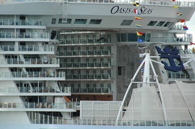 From QM2 we had a great view on the new Royal Caribbean Ship, the Oasis, Princess, Holland America, and other ships in port.